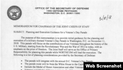 Guidance memorandum released by Department of Defense for military parade requested by President Donald Trump.