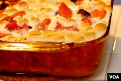 Green bean casserole – a baked mix of green beans, cream of mushroom soup, and fried onions (recipe)
