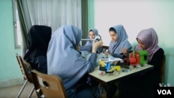 The six Afghan teenagers are members of the first-ever Afghan robotics team. They were chosen among talented girls from 10 schools in western Herat province to participate in the upcoming Global Challenge robotics contest in Washington.