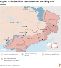 In the balloting, scheduled to run from Friday to Tuesday in the provinces of Luhansk, Kherson and the partly Russian-controlled Zaporizhzhia and Donetsk regions, voters are being asked if they want their areas to become part of Russia.
