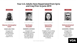Prior to Wednesday, the State Department said it had repatriated three U.S. men from Syria and Iraq, all of whom were prosecuted for IS-related crimes. A woman and her four children have also been taken back.