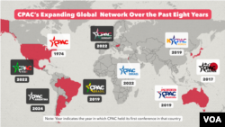 The international conferences, CPAC says, serve to "unite conservatives from all over the world, strengthen the movement, and challenge globalism." They are also used for public outreach, recruitment and mobilization, according to a recent paper on CPAC by Grant A. Silverman, a research assistant at George Washington University in Washington.