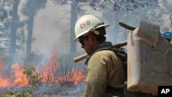 U.S. firefighters have made gains in battling a massive wildfire in California that is threatening a famous national park.