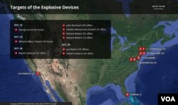 U.S. law enforcement authorities say the pipe bombs that were mailed to several high-profile Democrats, including former President Barack Obama and former Secretary of State Hillary Clinton, are crudely built devices that are similar in appearance.