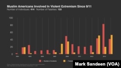 In total, attacks carried out by Muslim American extremists have killed 123 Americans in the U.S. since 9/11, according to Kurzman.