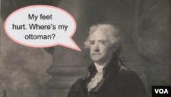 While future presidents also coined new words, Dickson says the founders were particularly prolific. Jefferson alone is credited for coming up with more than 100 words, including “belittle,” “pedicure,” “monotonously” and “ottoman” [footstool]. Fittingly, he also invented the verb “neologize,” which is the practice of coining new words or expressions.