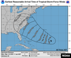 At the same time Florence is expected to make its landfall, another storm, Hurricane Isaac, is forecast to move across the Lesser Antilles and into the eastern Caribbean Sea.