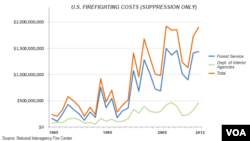 In 1985, the U.S. government spent $240 million putting out wildland fires on public and private lands. By 2012, these suppression costs had risen eightfold, to $1.9 billion.