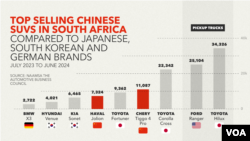 “These Chinese brands have actually been growing at double digits, particularly in the last three years,” he told VOA. “So if you look at growth between 2019 and 2023, we’ve seen actually a more than 200% increase in terms of Chinese brands that are coming into the South African market, and that is obviously very, very unusual.”