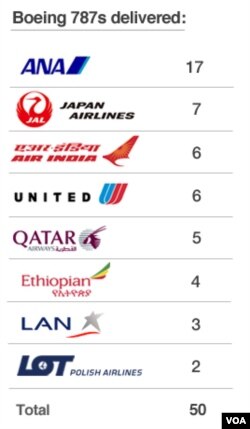 About half of the 50 Dreamliners in use today are operated by ANA and Japan Airlines.