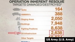 But U.S. military public documentation, including photos and videos, contradicts Konashenkov's assertion and chronicles dozens of coalition attacks on IS oil production, refinement and distribution targets from the beginning of the air campaign against IS in 2014.