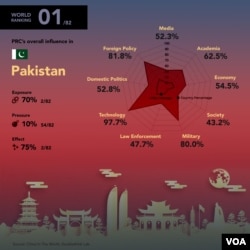 According to the report, China’s influence in Pakistan is most active in the domains of technology, foreign policy and military.