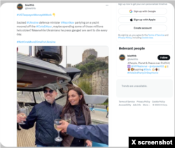 An apparent far-left X user, at-bkeithb, posted a photograph of former Ukrainian Defense Minister Oleksii Reznikov sharing a drink on a yacht, claiming that, in so doing, Reznikov was using U.S. taxpayer dollars meant to fund the war in Ukraine.
