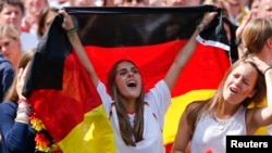 Hundreds of thousands of jubilant Germans welcomed their triumphant national soccer team home in Berlin on Tuesday, waving flags and wearing the national colors as they basked in the nation's fourth World Cup victory.