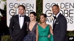 Denzel Washington was the recipient of the Cecil B. DeMille Award given annually to an artist for outstanding contributions to the world of entertainment. Washington brought his wife and three of his four children on stage with him. He had trouble reading his speech and his wife told him he needed his glasses. He asked her to read the speech for him, but she did not have her glasses, either. Other recipients of the DeMille Award in the past include George Clooney, Woody Allen, Morgan Freeman, Steven Spielberg, Martin Scorsese and Barbra Streisand.