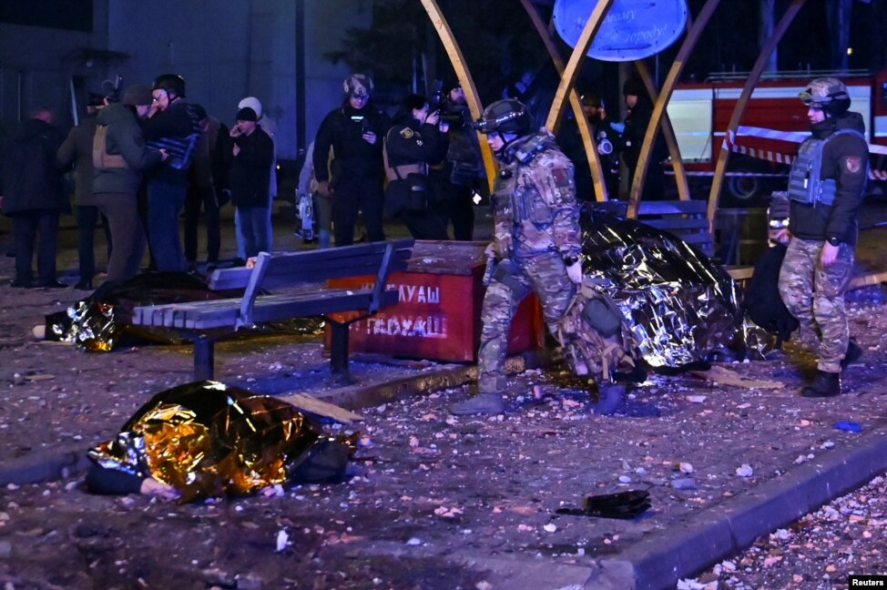 Bodies of the victims and people injured in the attack were strewn across a road and adjacent paved areas next to damaged public transportation facilities. The debris hit a tram and a bus with passengers inside, Ukraine’s prosecutor general’s office said.