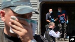 In a phone call with reporters in Kyiv, OSCE spokesman Michael Bociurkiw said the experts briefly visited the rural station where the railroad cars were parked. The experts, carrying a flashlight, stepped into the three refrigerated cars containing body bags.