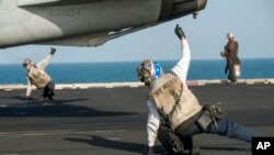 In Syria, 12 air strikes targeted Islamic State positions near Kobani. In Iraq, five strikes hit near Mosul and five near Tal Afar, the statement said.
