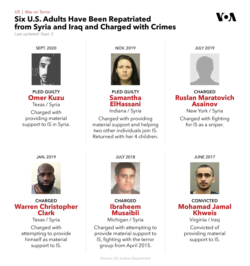Since 2017, the U.S. has repatriated eight adults and 10 children from Syria and Iraq.