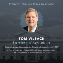 With this year’s harvest complete, farmers are looking at new uncertainty in 2021 as the incoming administration of President-elect Joe Biden tackles the pandemic, inherits a trade war and installs new agency heads key to farm policy, such as the chief of the U.S. Department of Agriculture. Former Iowa Governor Tom Vilsack, who held the post under President Barack Obama, is Biden’s choice for the post.